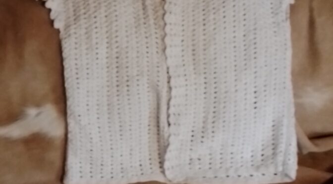Het vestje is gehaakt in de maat S, omdat ik niet genoeg garen had om deze groter te maken. Wil je groter pas dan het aantal steken aan. Reken voor elke extra schulp 8 steken.